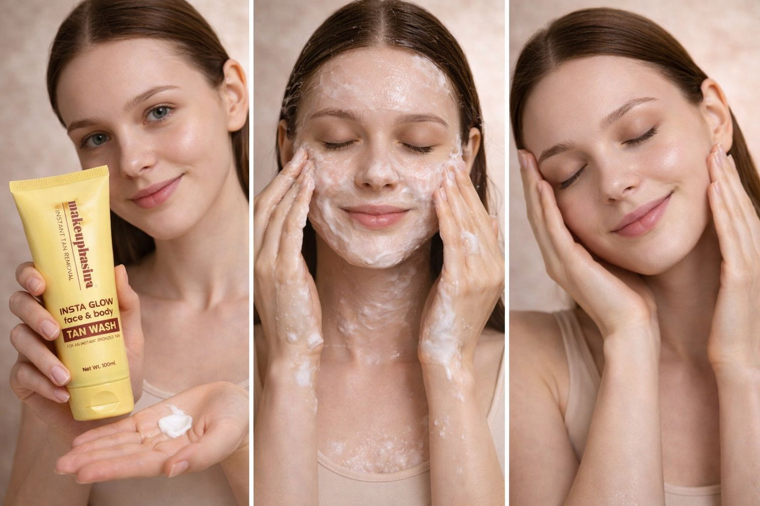 A quick and effective tan removal solution that restores your natural glow. This gentle formula cleans dirt, oil, and tan while keeping your skin hydrated and refreshed.